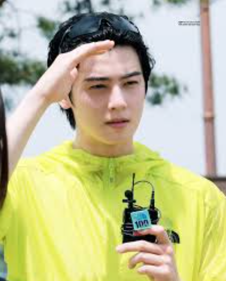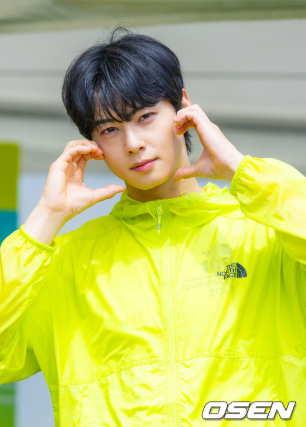 차은우가 착용한 상의는 노스페이스 형광 라임 윈드브레이커입니다.