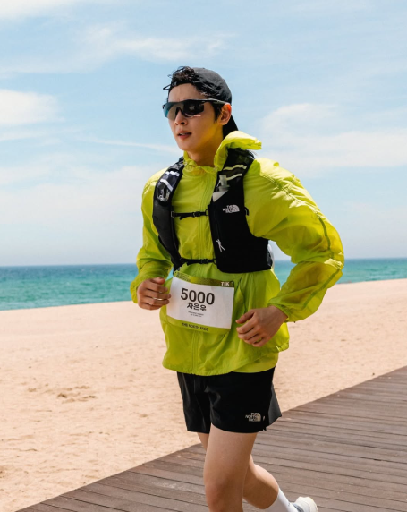 배우 겸 가수 차은우가 11km 코스를 완주하며 러닝룩의 정석을 보여줬습니다.
